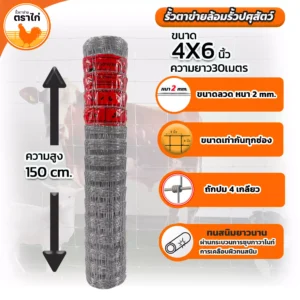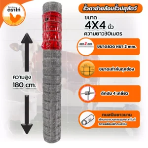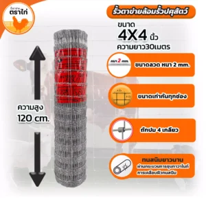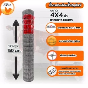 - 4×4 นิ้ว: เหมาะสำหรับเลี้ยงไก่ขนาดกลาง ช่วยป้องกันสัตว์หลุดรอดได้ดี